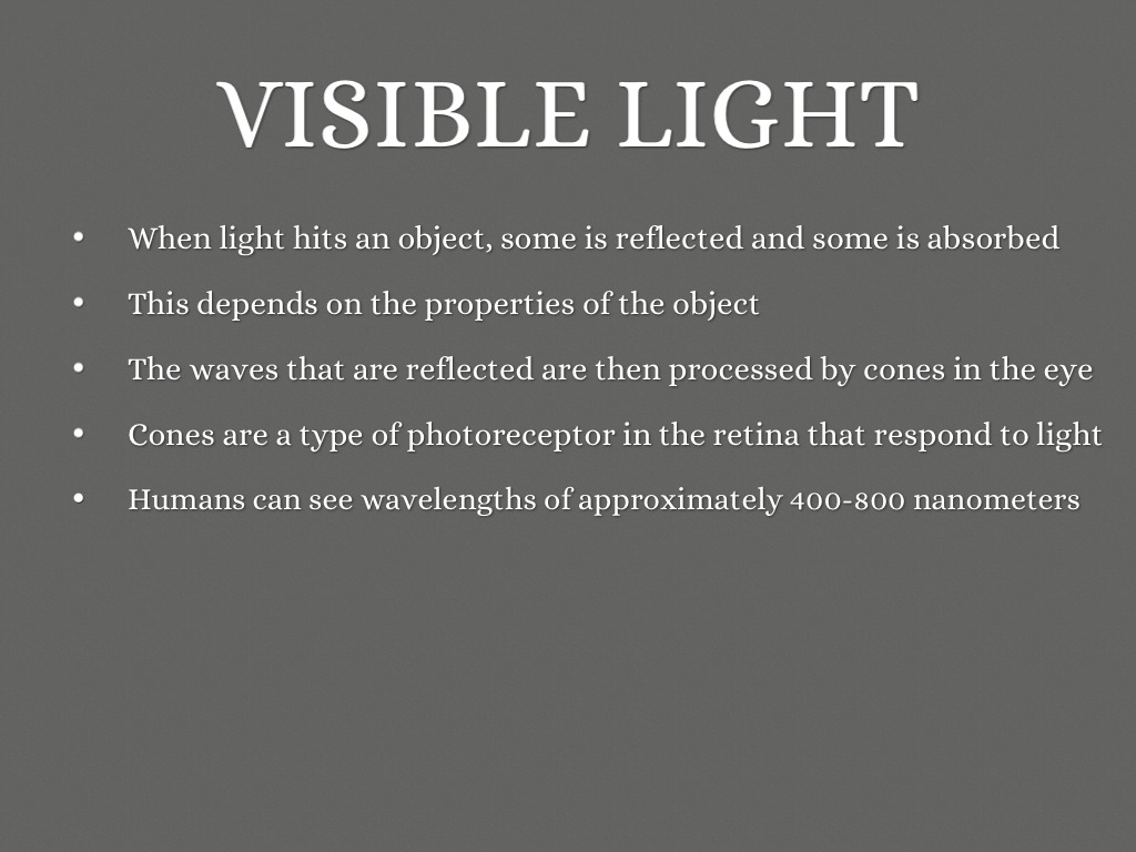 The waves that are reflected are then processed by cones in the eye