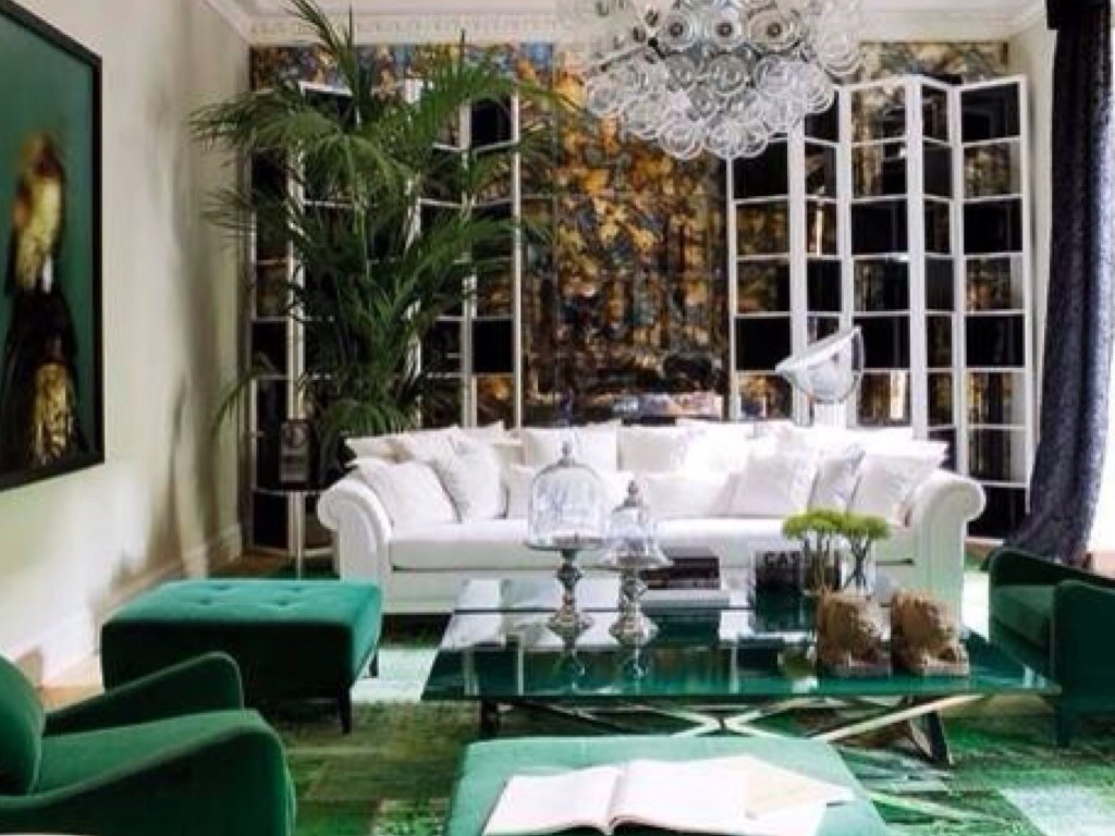 Not everything in the room has to be a share of green. To get the monochromatic effect, a bold green is used on large items that are close in proximity.