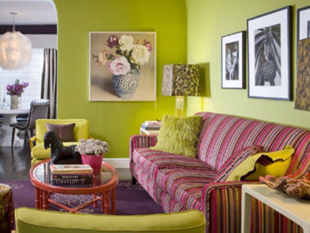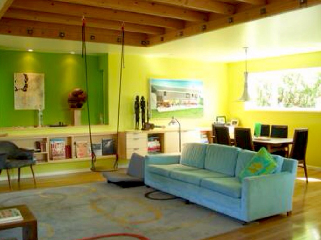 Again, not everything in the interior has to be teal or lime. The furniture against the lime wall demonstrates a chic analogous color scheme without looking tacky.