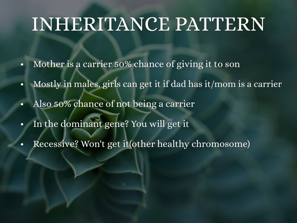 Mostly in males, girls can get it if dad has it/mom is a carrier