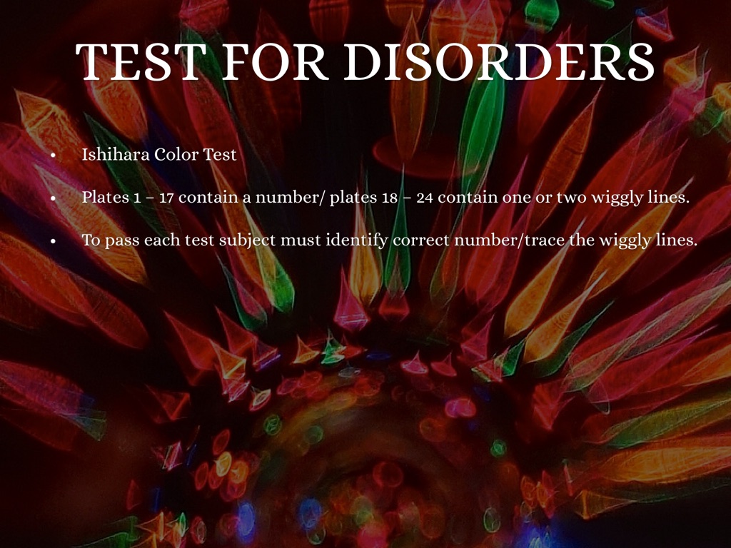 To pass each test subject must identify correct number/trace the wiggly lines.