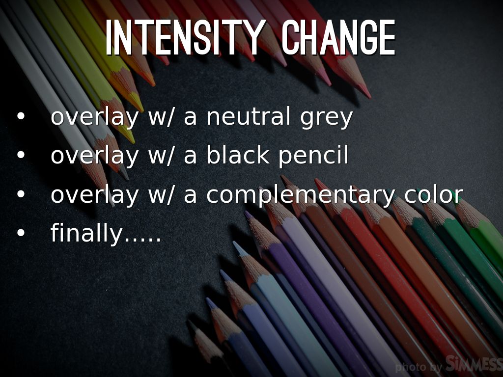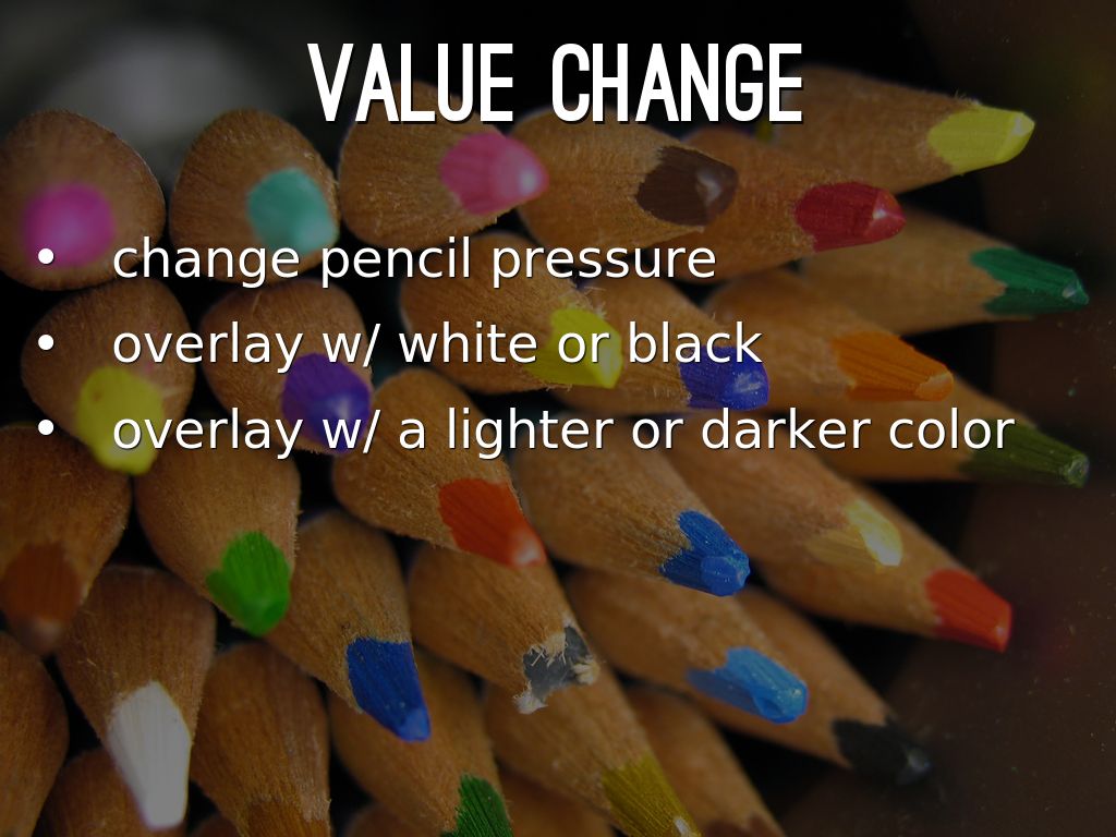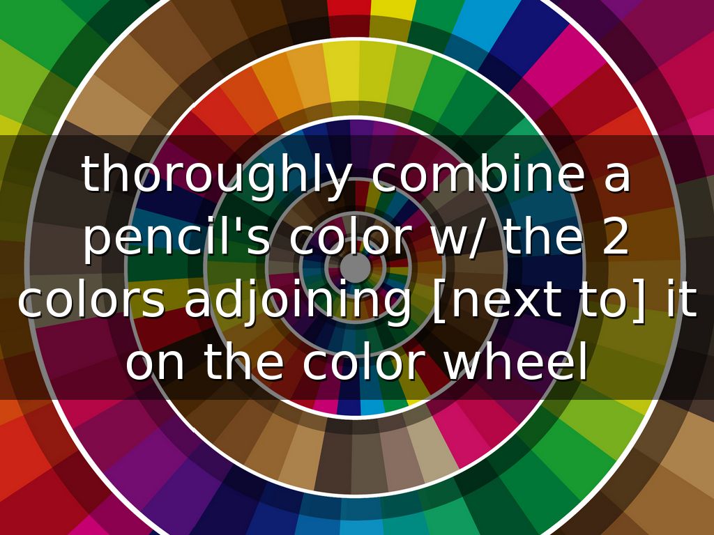 thoroughly combine a pencil's color w/ the 2 colors adjoining [next to] it on the color wheel