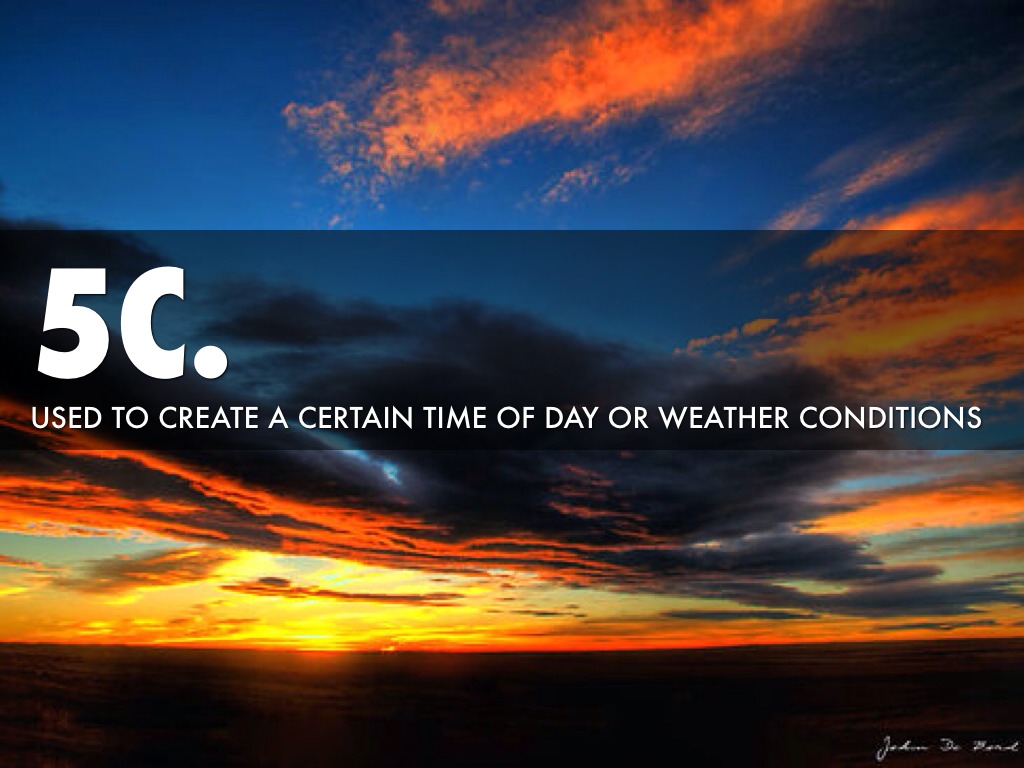USED TO CREATE A CERTAIN TIME OF DAY OR WEATHER CONDITIONS