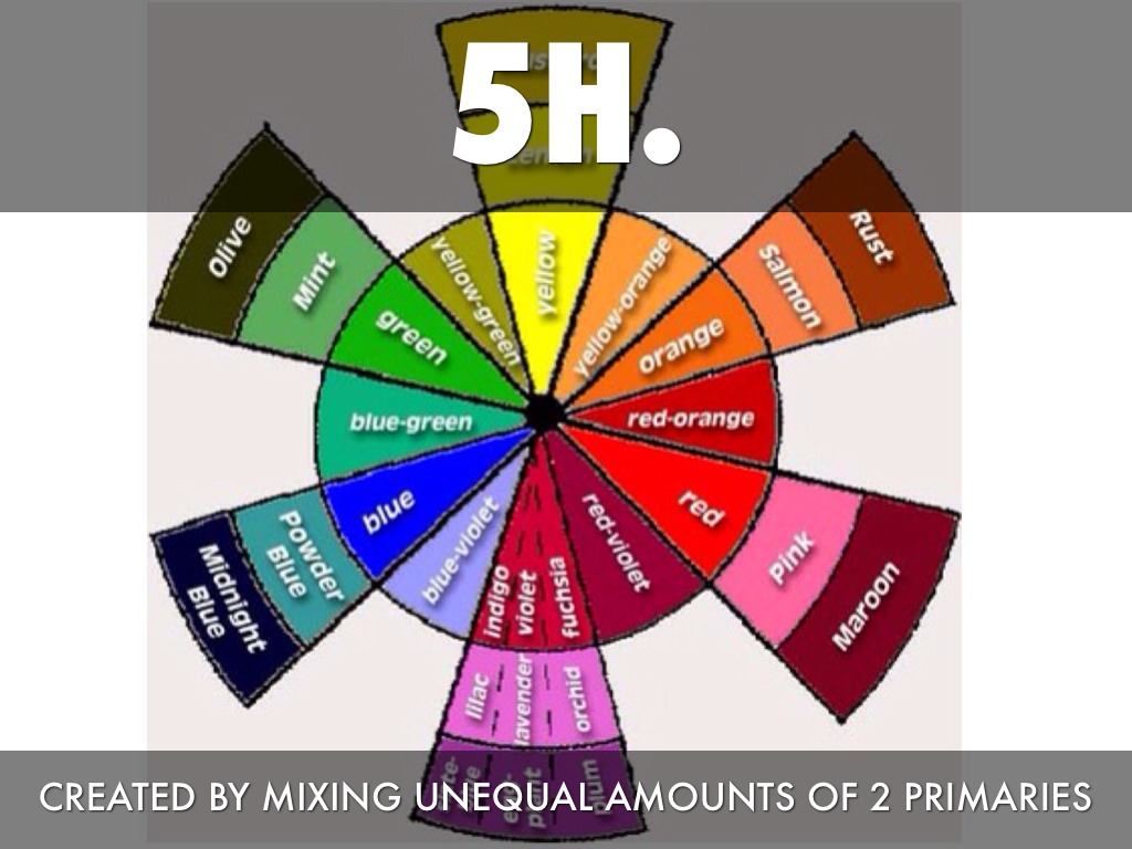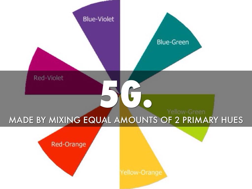 MADE BY MIXING EQUAL AMOUNTS OF 2 PRIMARY HUES