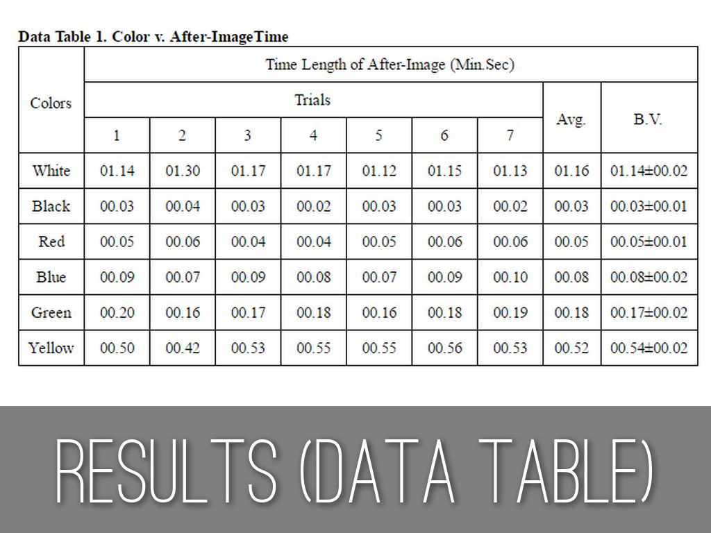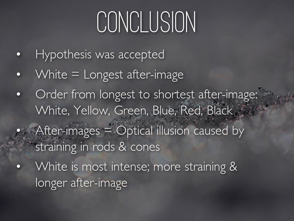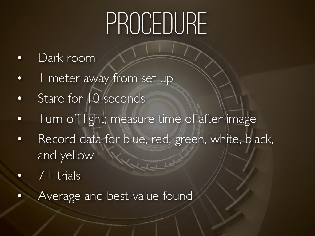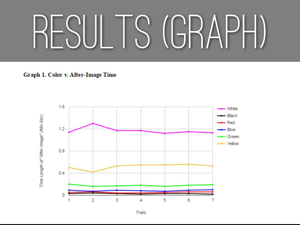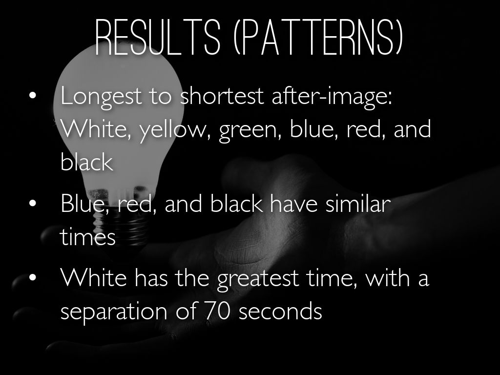 Order from longest to shortest after-image: White, Yellow, Green, Blue, Red, Black