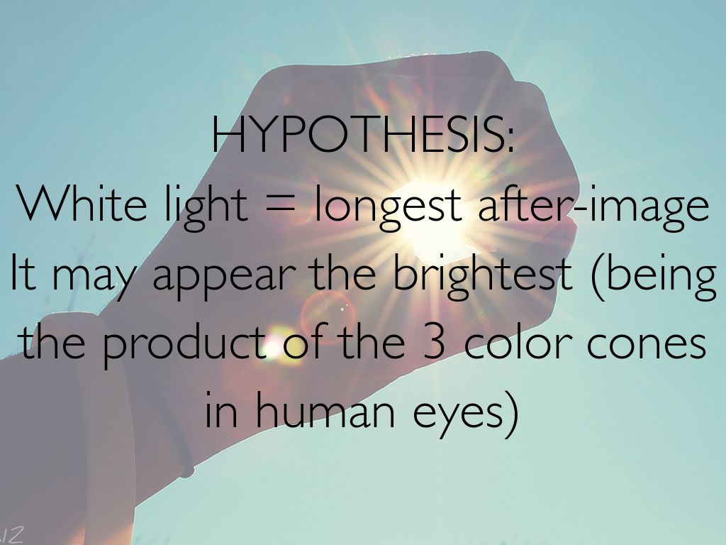 White light = longest after-image It may appear the brightest (being the product of the 3 color cones in human eyes)