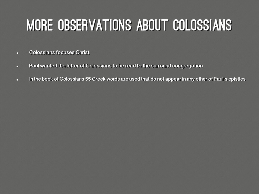 OBSERVATIONS ABOUT COLOSSIANS