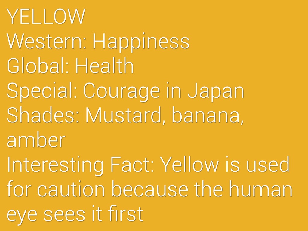 Interesting Fact: Yellow is used for caution because the human eye sees it first
