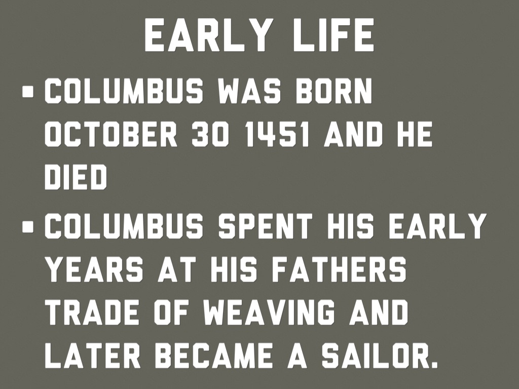 Columbus spent his early years at his fathers trade of weaving and later became a sailor.