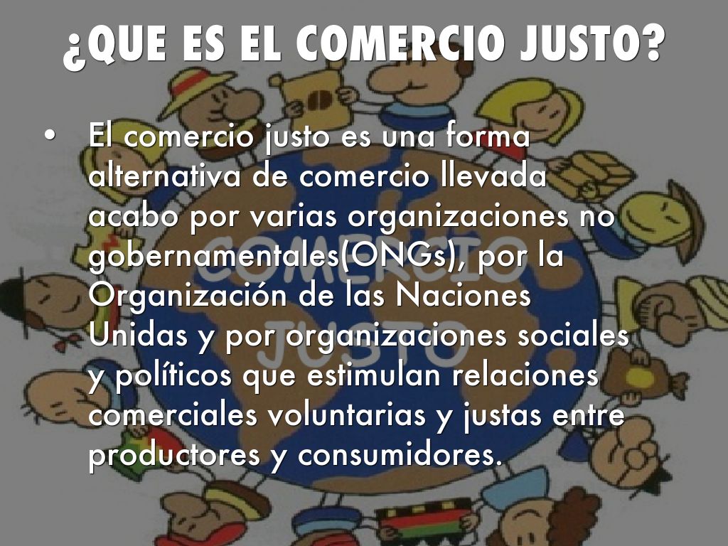 El comercio justo es una forma alternativa de comercio llevada acabo por varias organizaciones no gobernamentales(ONGs), por la Organización de las Naciones Unidas y por organizaciones sociales y políticos que estimulan relaciones comerciales voluntarias y justas entre productores y consumidores.