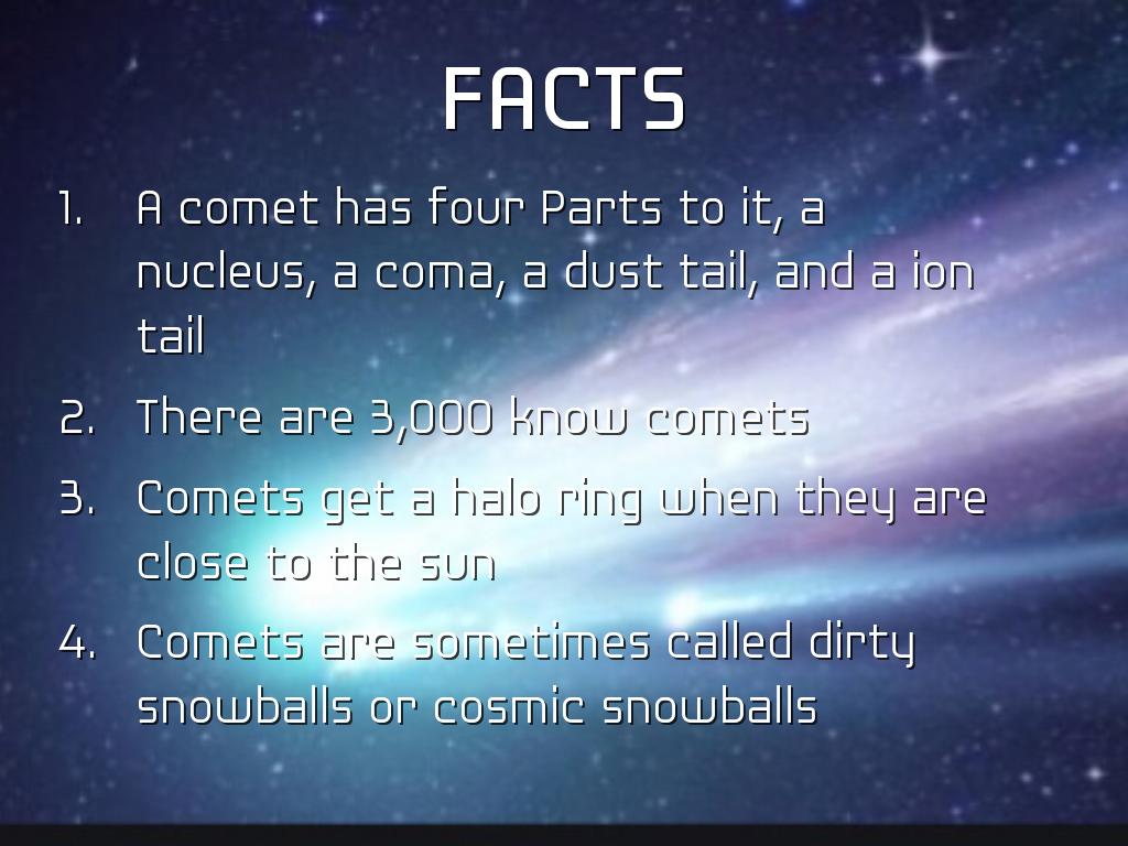 A COMET IS A BALL OF MOSTLY ICE FLYING THROUGH SPACE