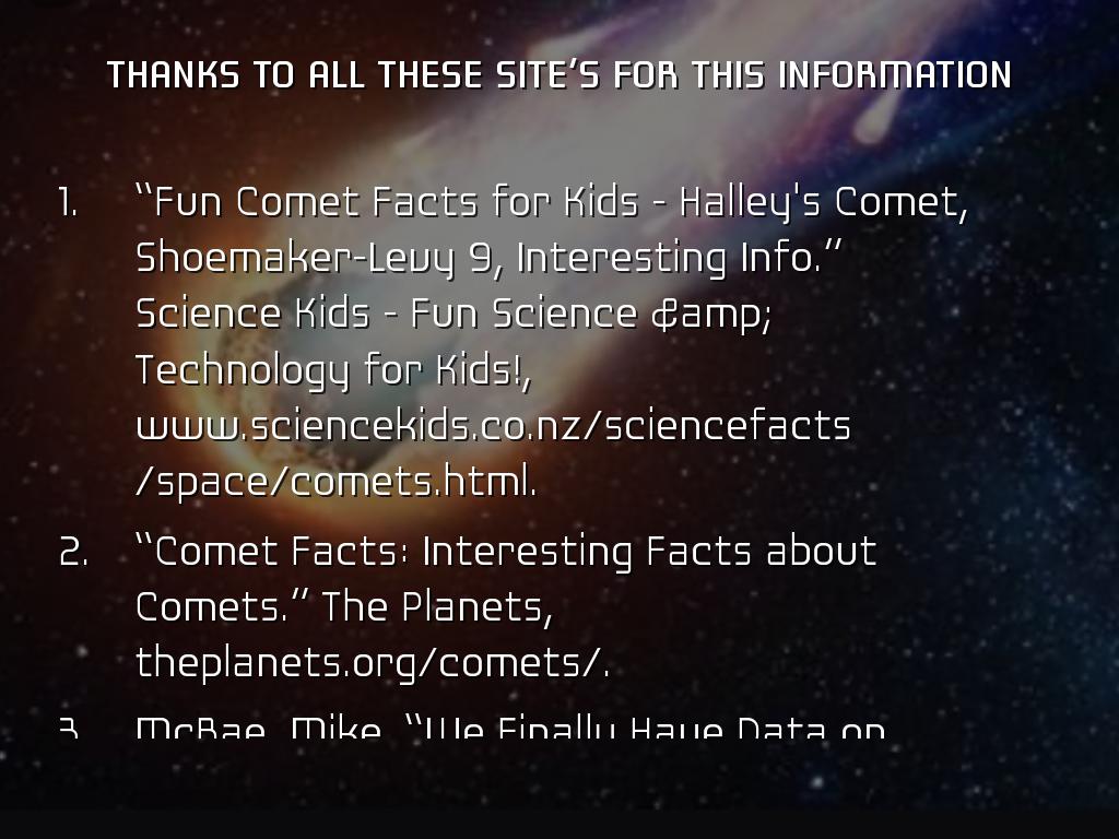 “Fun Comet Facts for Kids - Halley's Comet, Shoemaker-Levy 9, Interesting Info.” Science Kids - Fun Science & Technology for Kids!,