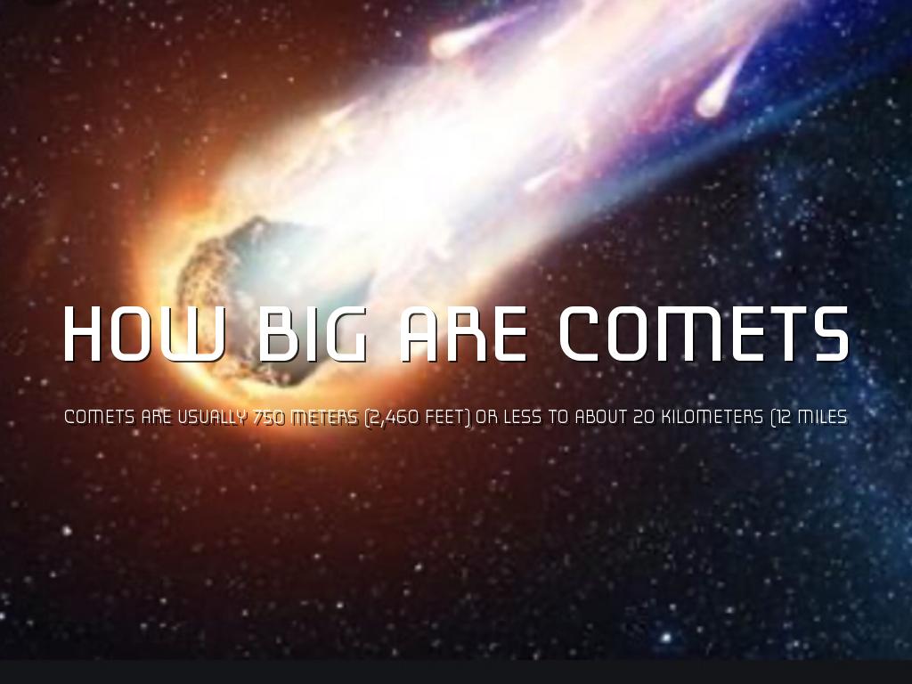 COMETS ARE USUALLY 750 METERS (2,460 FEET) OR LESS TO ABOUT 20 KILOMETERS (12 MILES