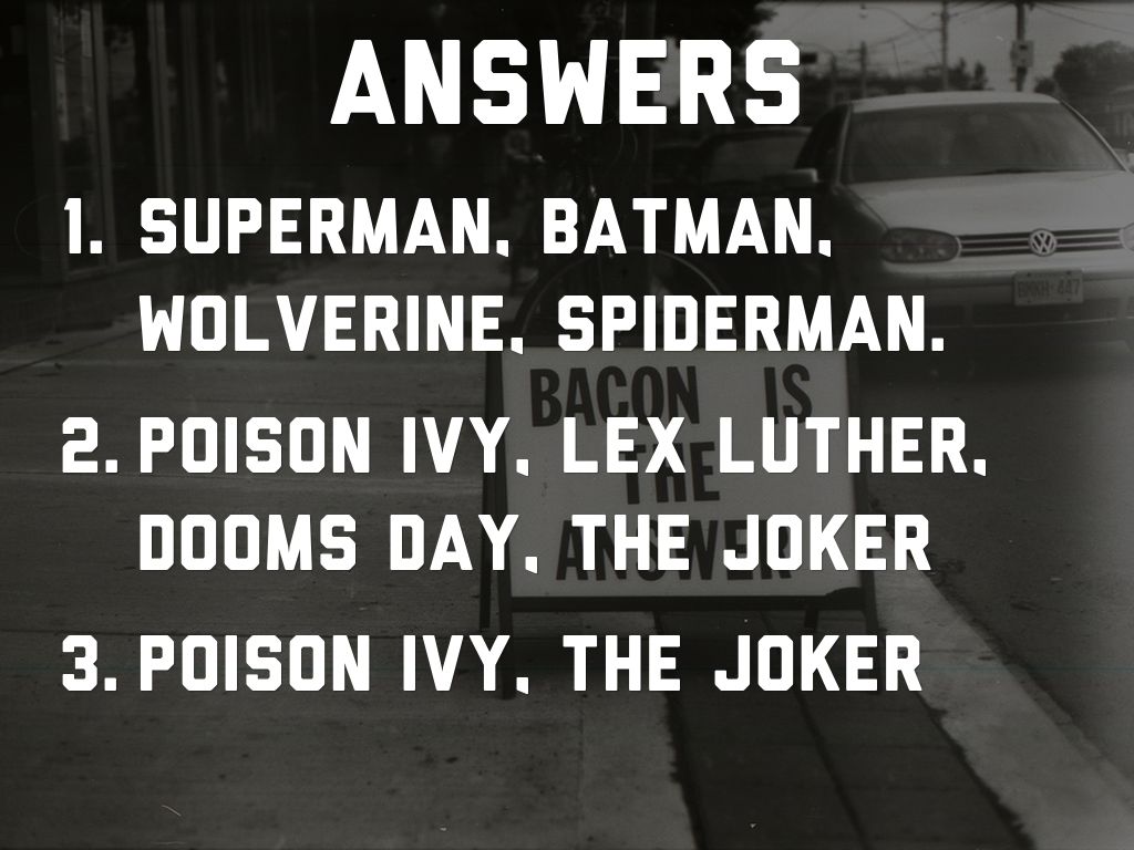 • Poison Ivy, Lex Luther, Dooms Day, The Joker