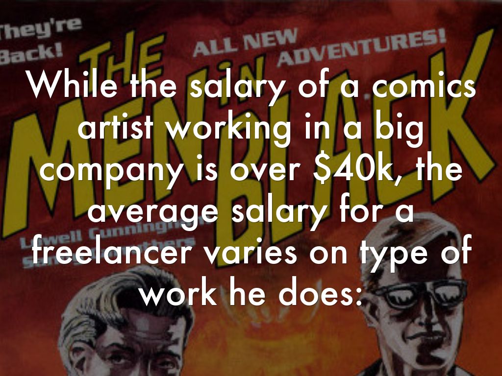 While the salary of a comics artist working in a big company is over $40k, the average salary for a freelancer varies on type of work he does:
