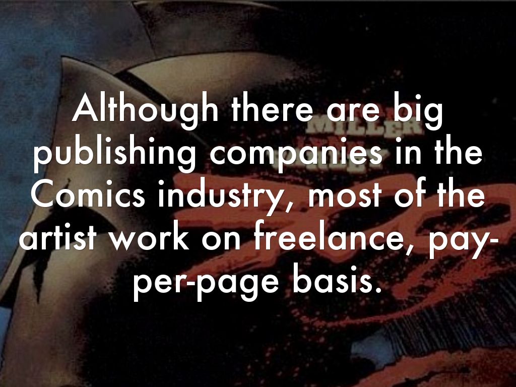 Although there are big publishing companies in the Comics industry, most of the artist work on freelance, pay-per-page basis.