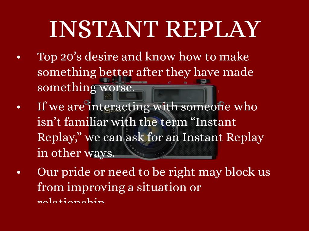 If we are interacting with someone who isn’t familiar with the term “Instant Replay,” we can ask for an Instant Replay in other ways.
