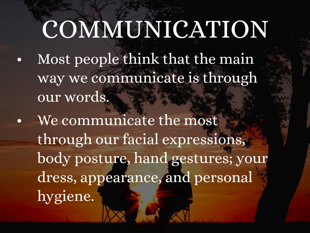 We communicate the most through our facial expressions, body posture, hand gestures; your dress, appearance, and personal hygiene.