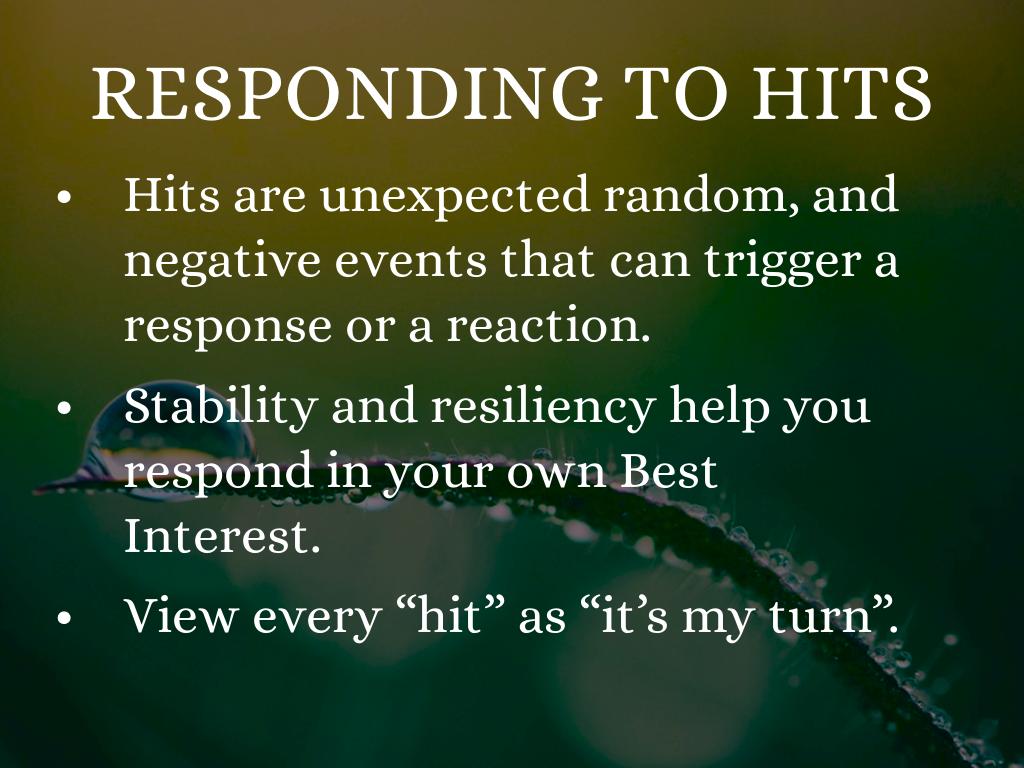Hits are unexpected random, and negative events that can trigger a response or a reaction.