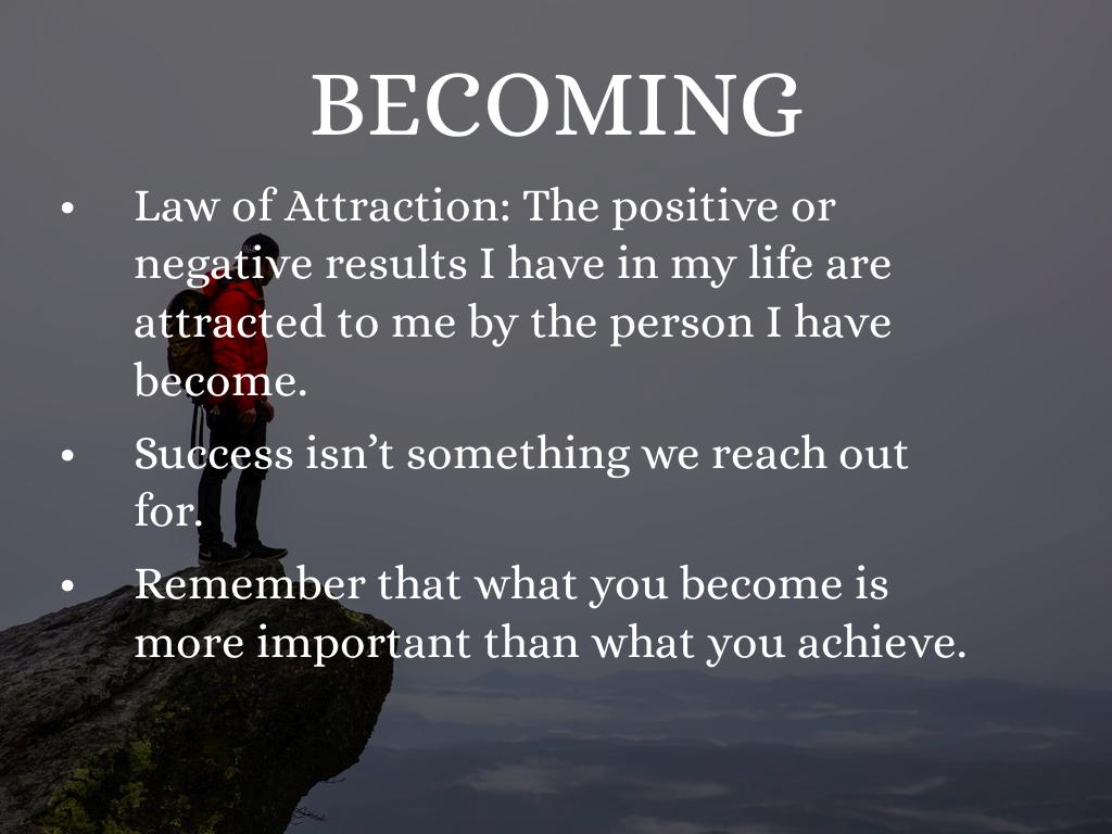 Law of Attraction: The positive or negative results I have in my life are attracted to me by the person I have become.