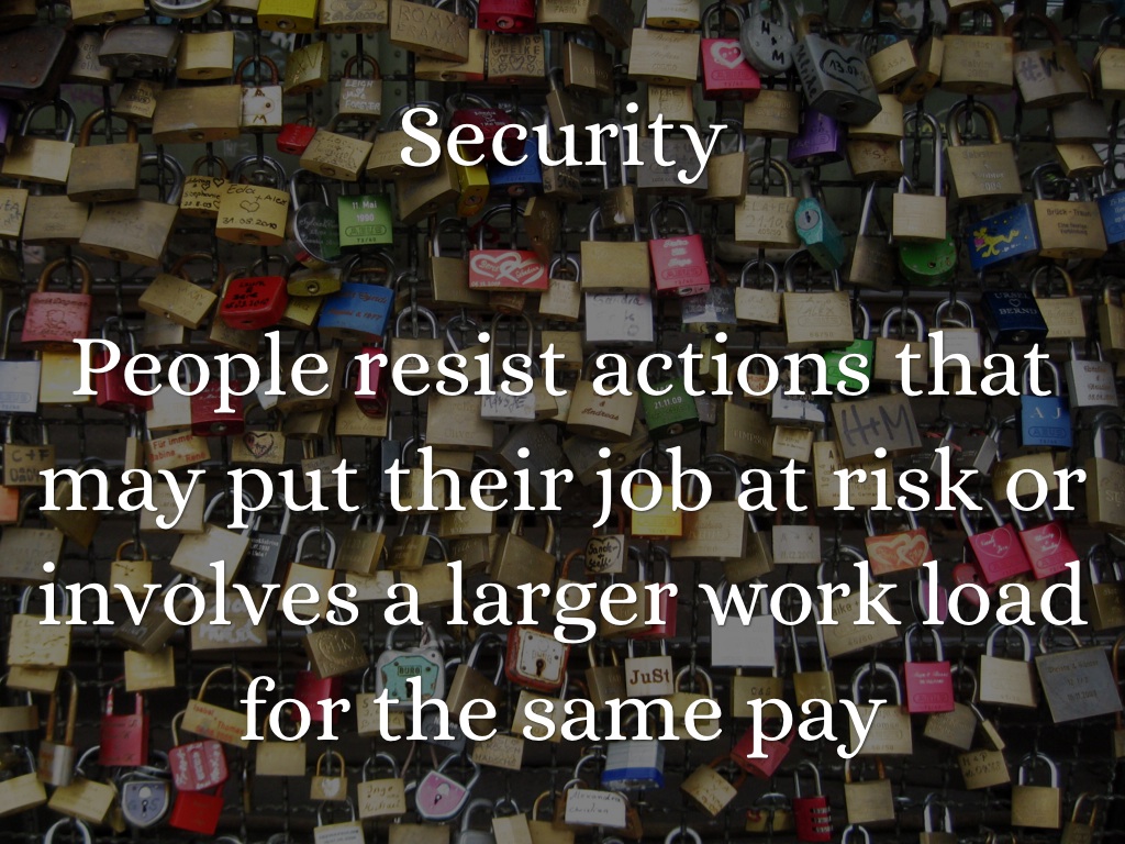 People resist actions that may put their job at risk or involves a larger work load for the same pay