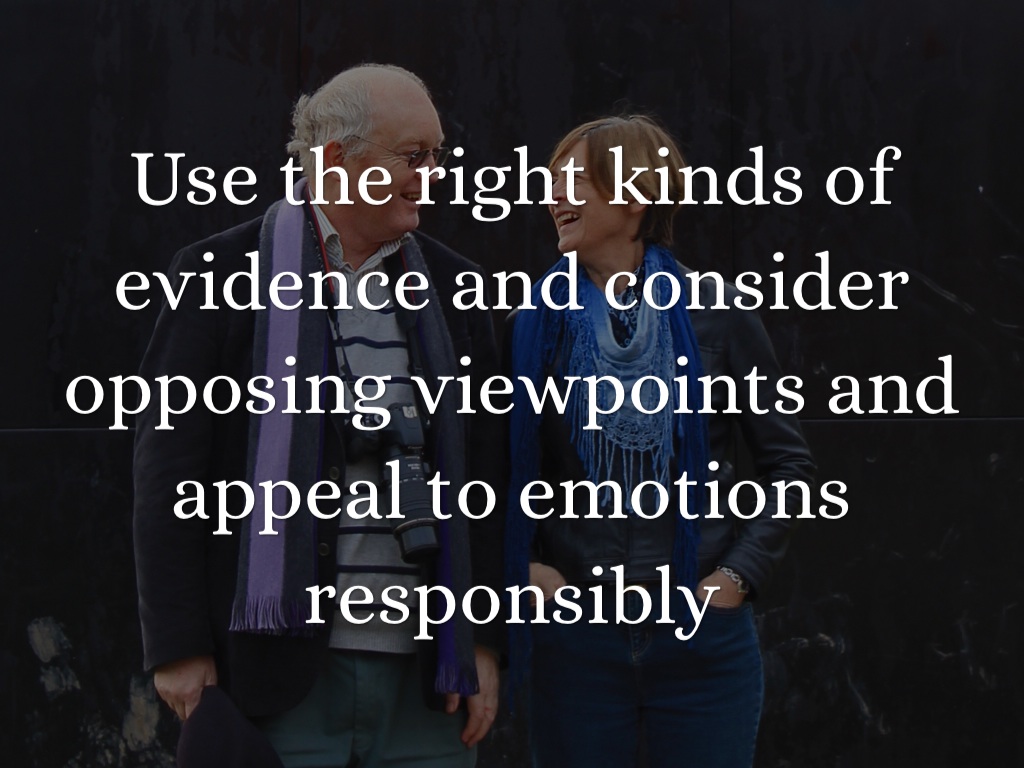 Use the right kinds of evidence and consider opposing viewpoints and appeal to emotions responsibly
