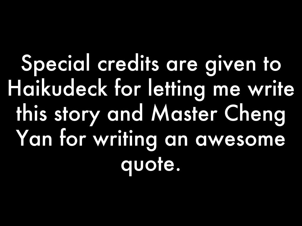 Special credits are given to Haikudeck for letting me write this story and Master Cheng Yan for writing an awesome quote.