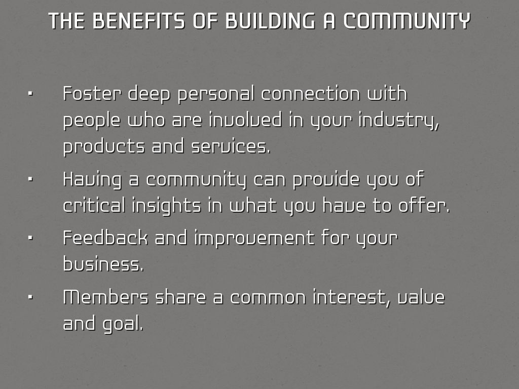 Foster deep personal connection with people who are involved in your industry, products and services.