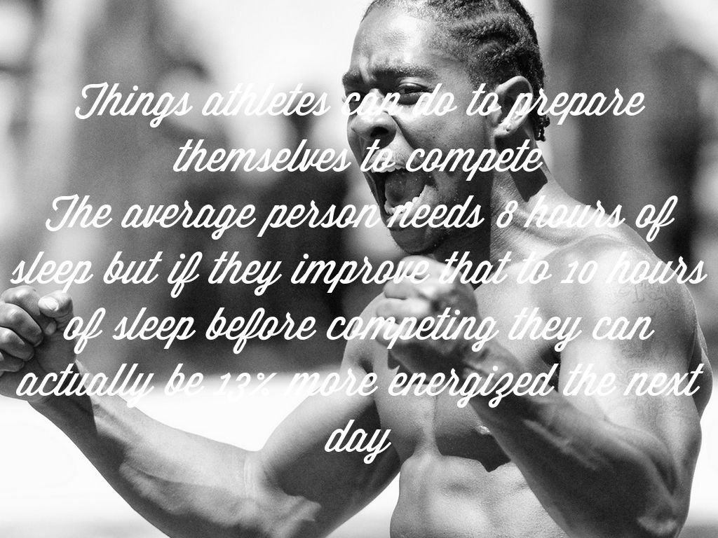 Things athletes can do to prepare themselves to compete The average person needs 8 hours of sleep but if they improve that to 10 hours of sleep before competing they can actually be 13% more energized the next day