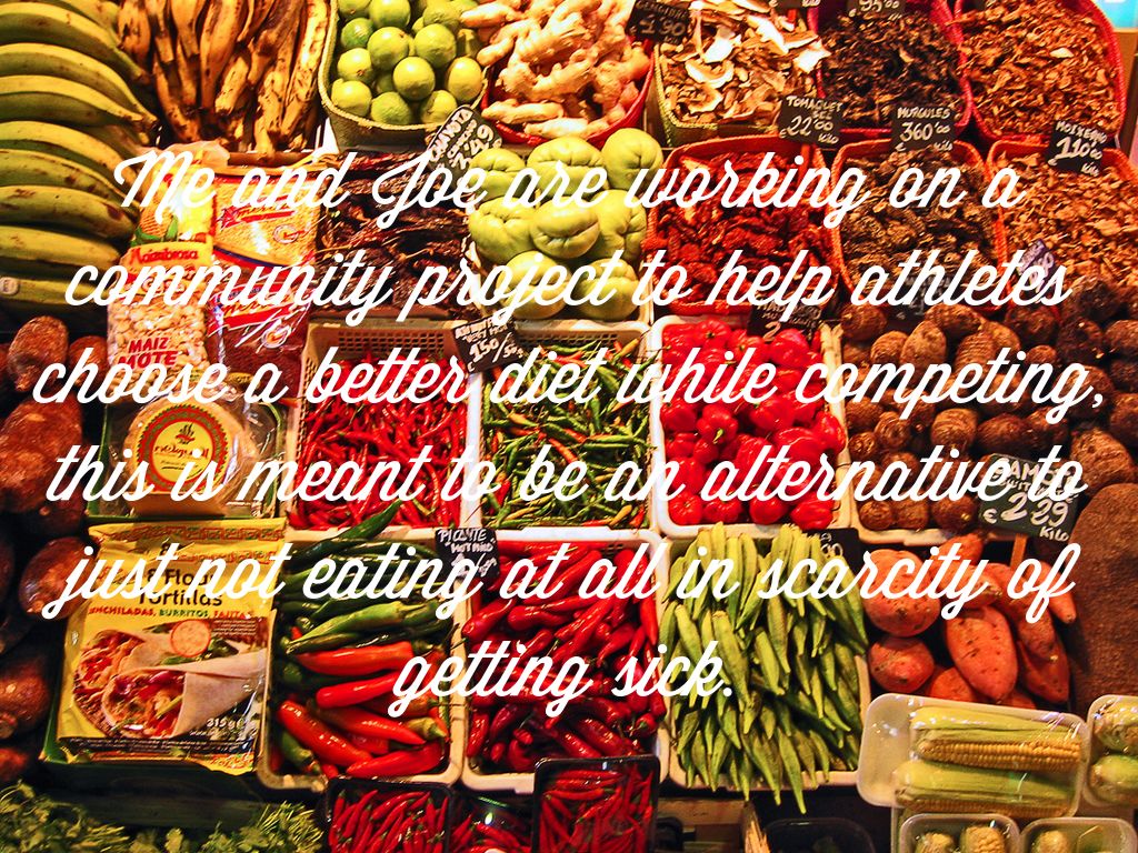 Me and Joe are working on a community project to help athletes choose a better diet while competing, this is meant to be an alternative to just not eating at all in scarcity of getting sick.