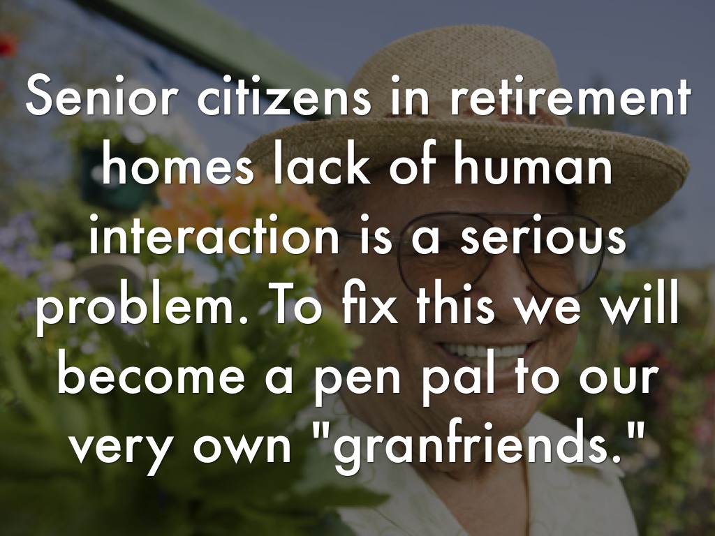 Senior citizens in retirement homes lack of human interaction is a serious problem. To fix this we will become a pen pal to our very own "granfriends."