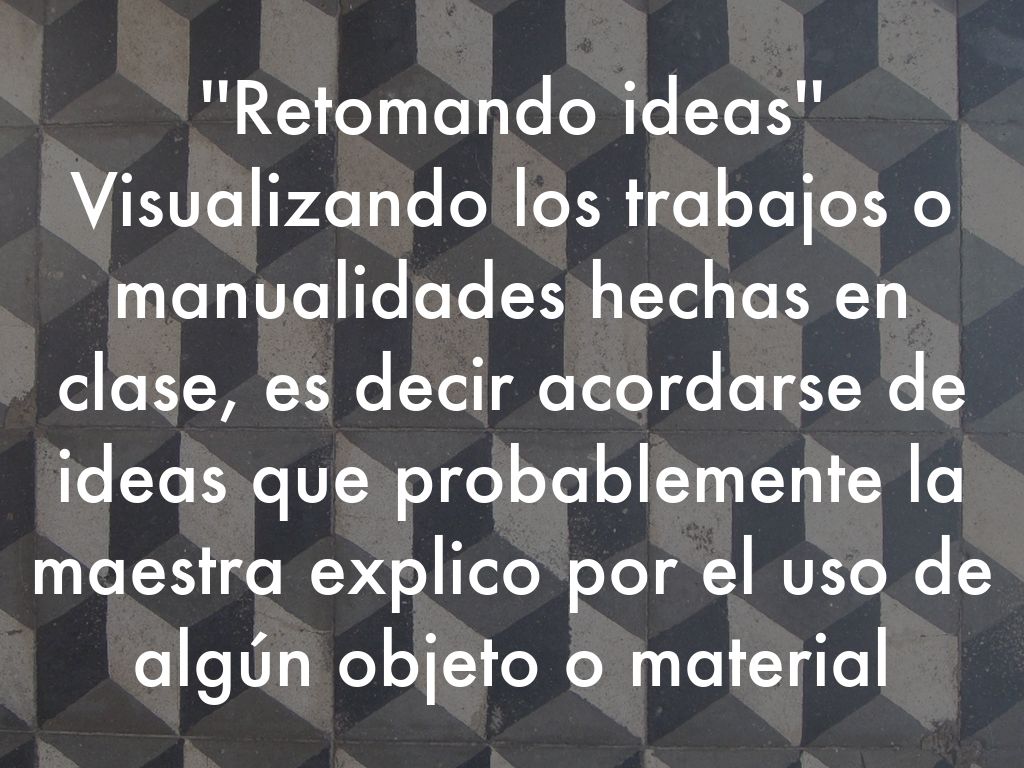 Visualizando los trabajos o manualidades hechas en clase, es decir acordarse de ideas que probablemente la maestra explico por el uso de algún objeto o material