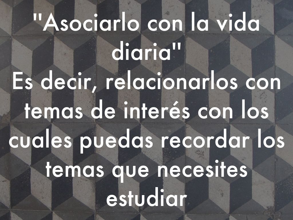 Es decir, relacionarlos con temas de interés con los cuales puedas recordar los temas que necesites estudiar