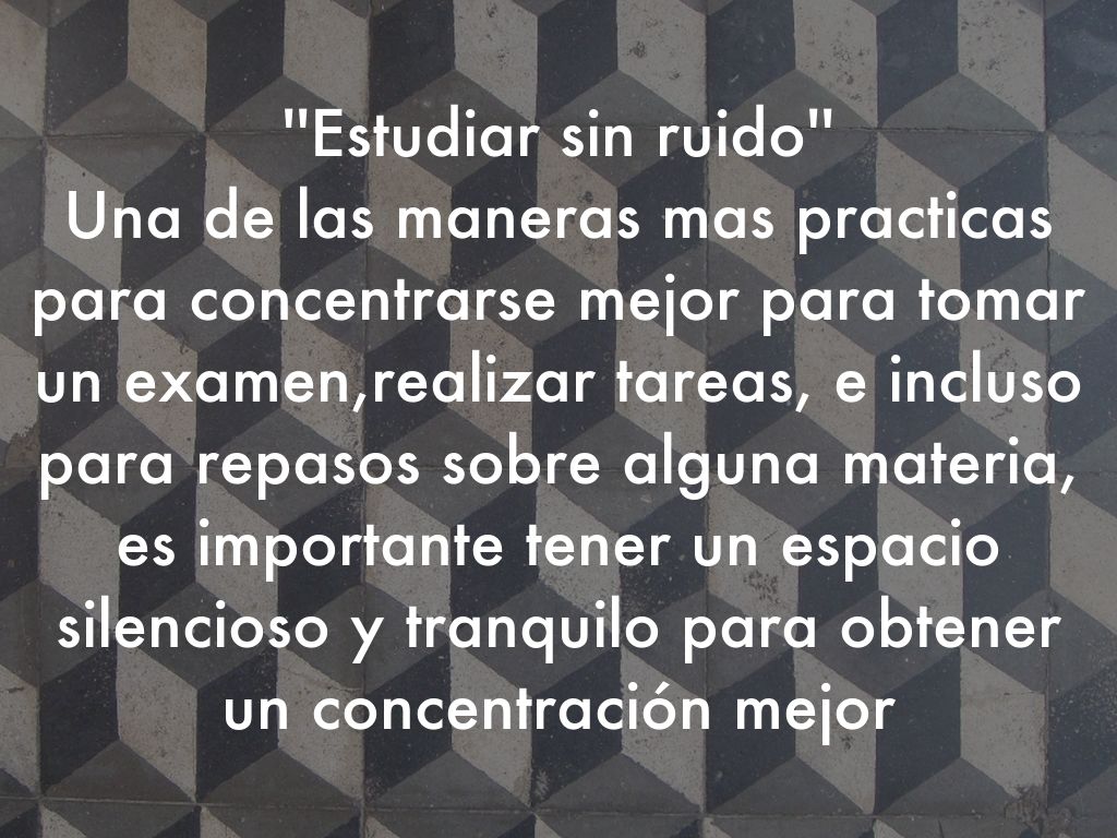 Una de las maneras mas practicas para concentrarse mejor para tomar un examen,realizar tareas, e incluso para repasos sobre alguna materia, es importante tener un espacio silencioso y tranquilo para obtener un concentración mejor
