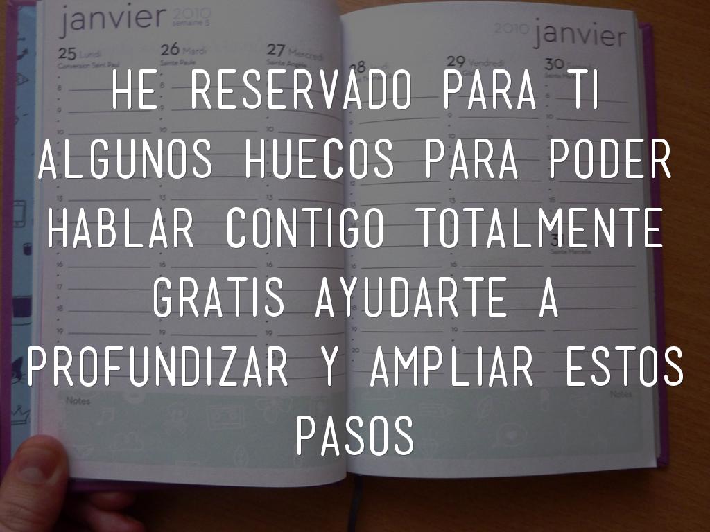HE RESERVADO PARA TI ALGUNOS HUEcOS PARA PODER HABLAR CONTIGO TOTALMENTE GRATIS AYUDARTE A PROFUNDIZAR Y AMPLIAR ESTOS PASOS