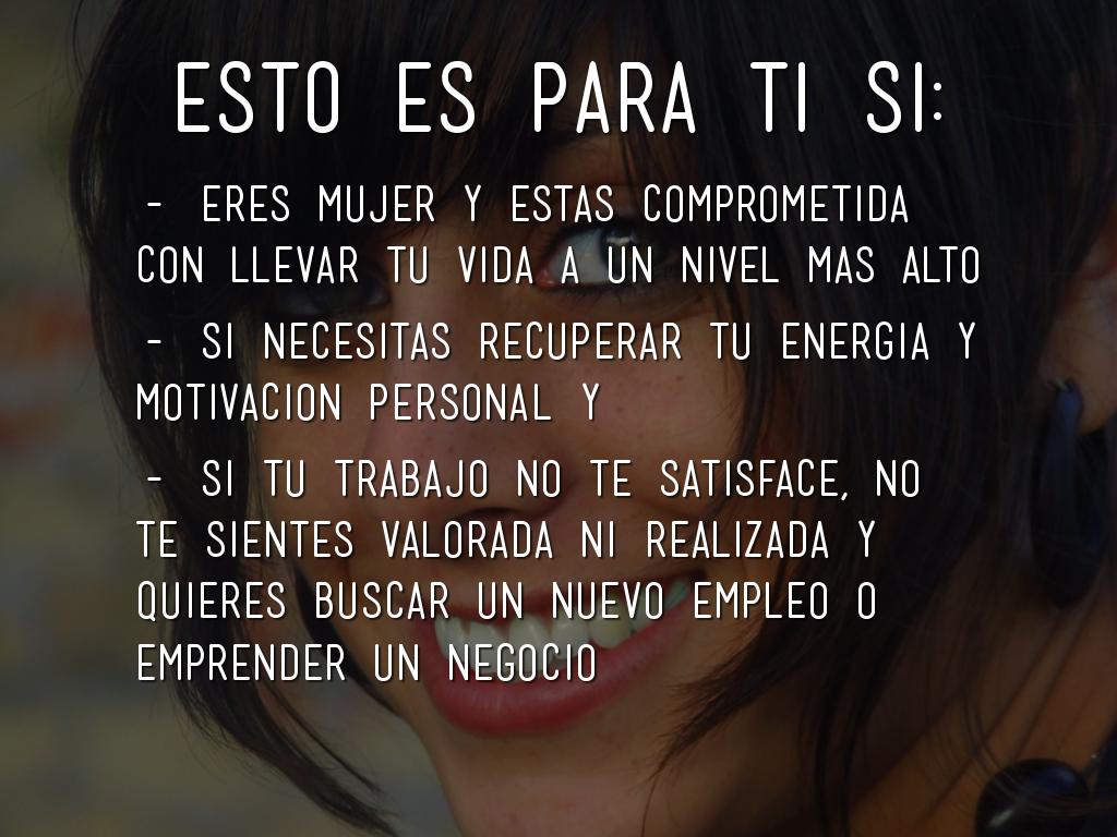 • - Eres mujer y estas comprometida con llevar tu vida a un nivel mas alto