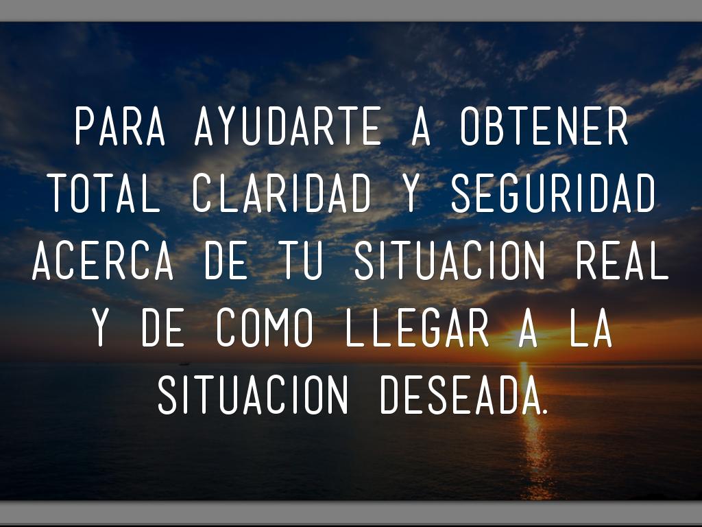 PARA AYUDARTE A OBTENER TOTAL CLARIDAD Y SEGURIDAD ACERCA DE TU SITUACION REAL Y DE COMO LLEGAR A LA SITUACION DESEADA.