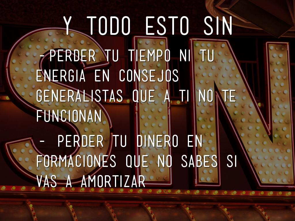 • - TODO ESTO SIN PERDER TU TIEMPO NI TU ENERGIA EN CONSEJOS GENERALISTAS QUE NO FUNCIONAN