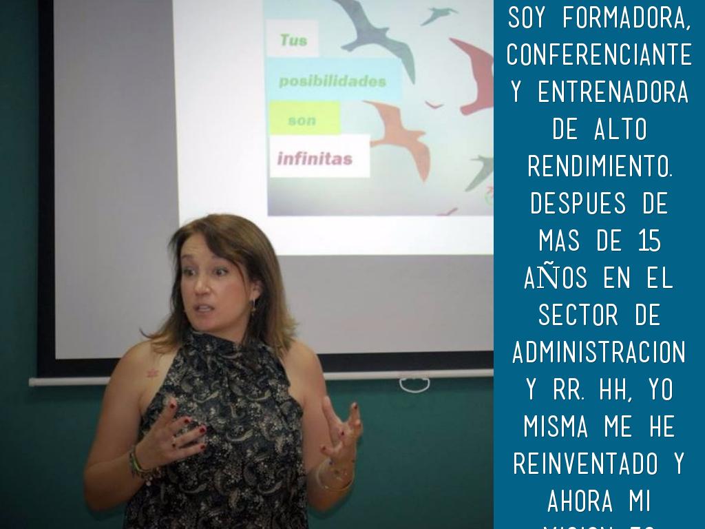 SOY FORMADORA, CONFERENCIANTE Y ENTRENADORA DE ALTO RENDIMIENTO. DESPUES DE MAS DE 15 AÑOS EN EL SECTOR DE ADMINISTRACION Y Rr. hH, YO MISMA ME HE REINVENTADO Y AHORA MI MISION ES ACOMPAÑAR A OTRAS PERSONAS EN EL PROCESO DE CREAR SU MEJOR VERSION.