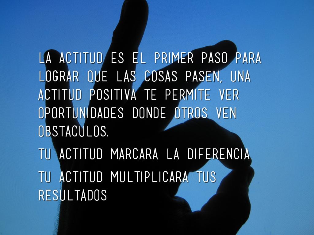 • LA ACTITUD ES EL PRIMER PASO PARA LOGRAR QUE LAS COSAS PASEN, UNA ACTITUD POSITIVA TE PERMITE VER OPORTUNIDADES DONDE OTROS VEN OBSTACULOS.