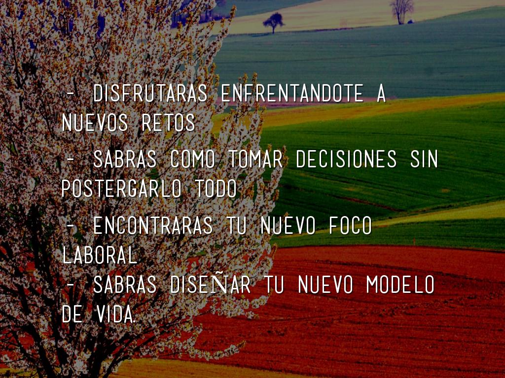 • - ENCONTRARAS TU NUEVO FOCO LABORAL - SABRAS DISEÑAR TU NUEVO MODELO DE VIDA.