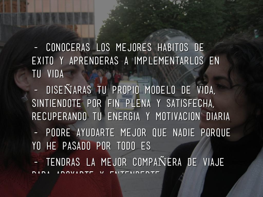 • - NO TE SENTIRAS SOLA, CONOCERAS A MAS MUJERES EXTRAORDINARIAS QUE HAN CONSTRUIDO SU MEJOR VERSION, HARAS CONTACTOS DE CALIDAD