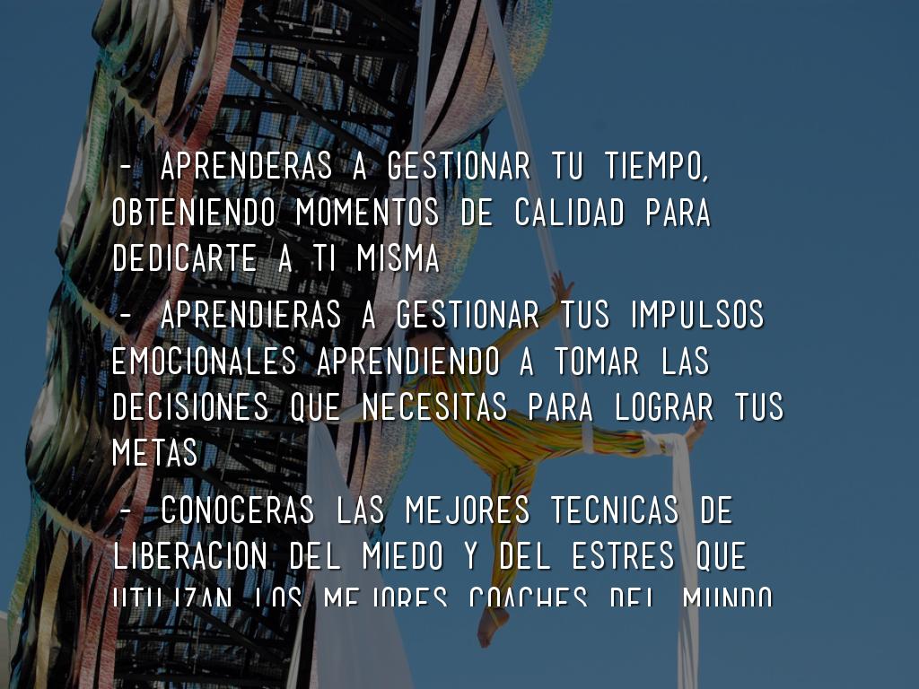 • - CONOCERAS LAS MEJORES TECNICAS DE LIBERACION DEL MIEDO Y DEL ESTRES QUE UTILIZAN LOS MEJORES COACHES DEL MUNDO