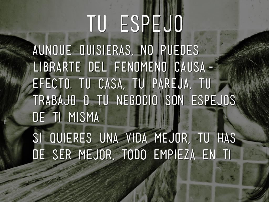 • AUNQUE QUISIERAS, NO PUEDES LIBRARTE DEL FENOMENO CAUSA-EFECTO. TU CASA, TU PAREJA, TU TRABAJO O TU NEGOCIO SON ESPEJOS DE TI MISMA