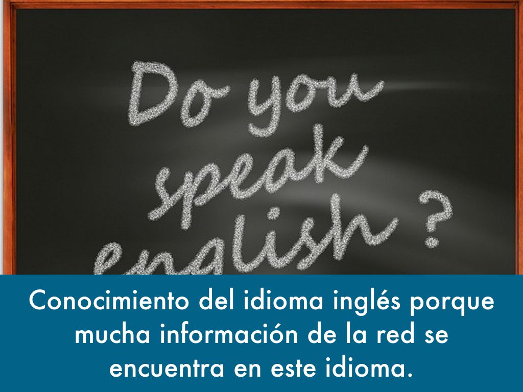 Conocimiento del idioma inglés porque mucha información de la red se encuentra en este idioma.