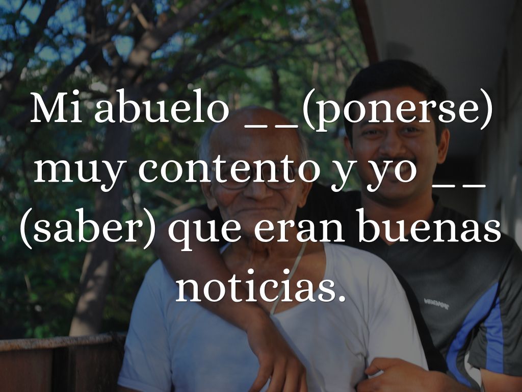 Mi abuelo __(ponerse) muy contento y yo __ (saber) que eran buenas noticias.