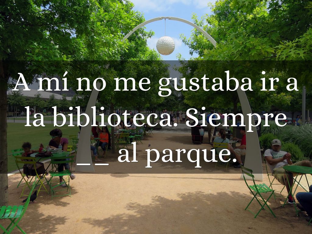 A mí no me gustaba ir a la biblioteca. Siempre __ al parque.
