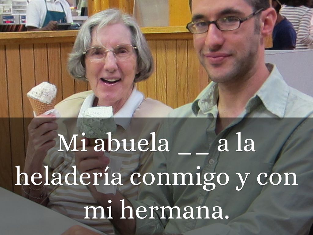 Mi abuela __ a la heladería conmigo y con mi hermana.