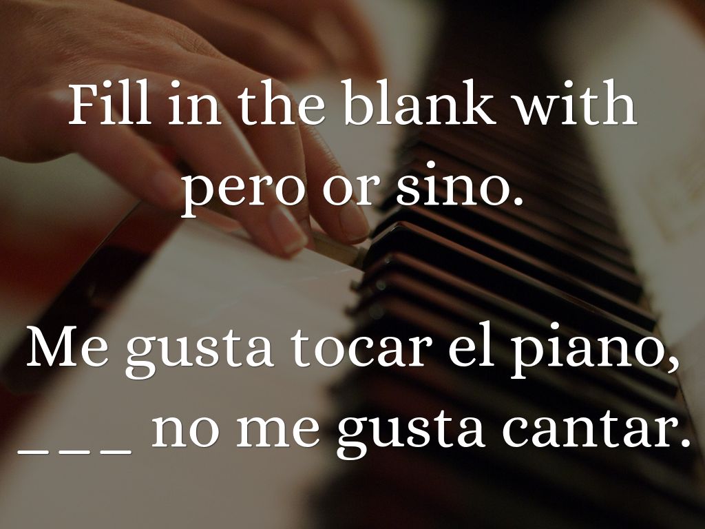 Me gusta tocar el piano, ___ no me gusta cantar.
