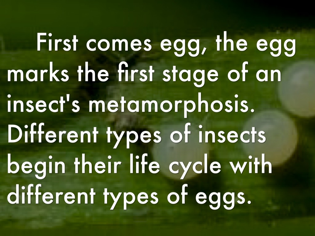First comes egg, the egg marks the first stage of an insect's metamorphosis. Different types of insects begin their life cycle with different types of eggs.